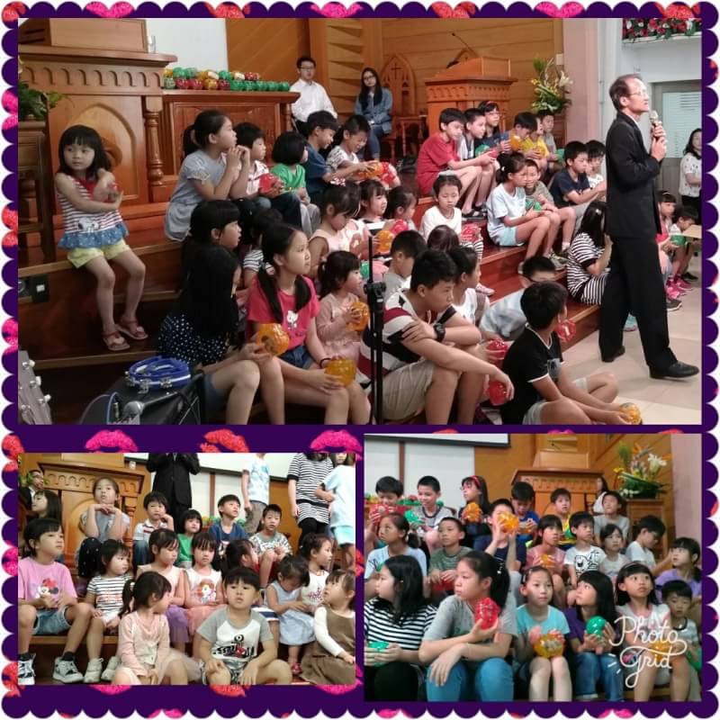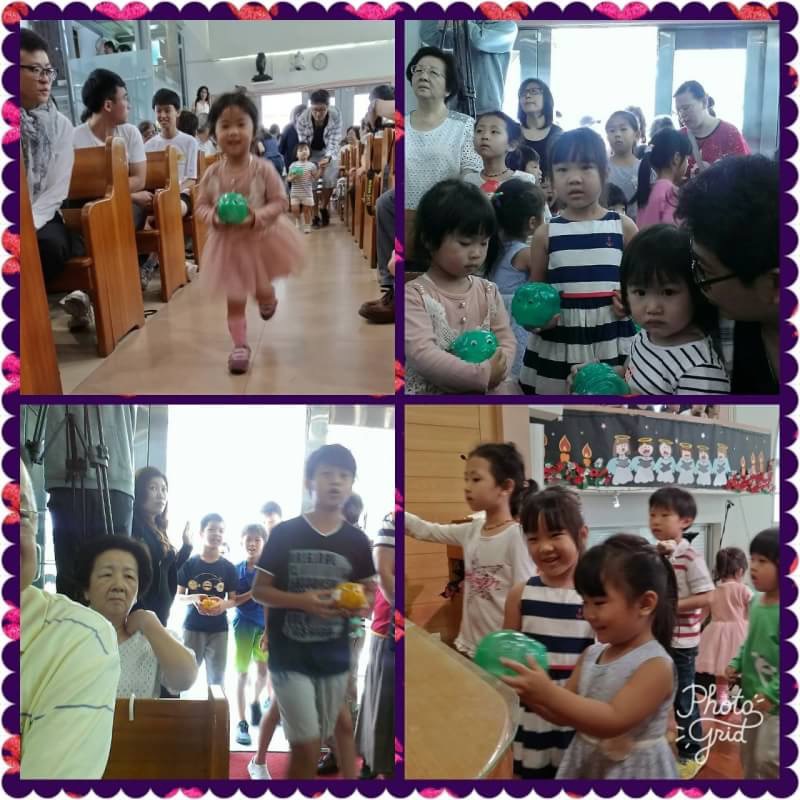 11:20國小跟幼兒組一同至教會獻小豬囉